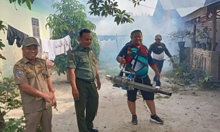 Mengantisipasi penyakit demam berdarah, pihak Babinsa DS bersama perangkat Desa Kotagaluh, Kecamatan Perbaungan, Serdang Bedagai, Sumut, melakukan penyemprotan atau fogging.