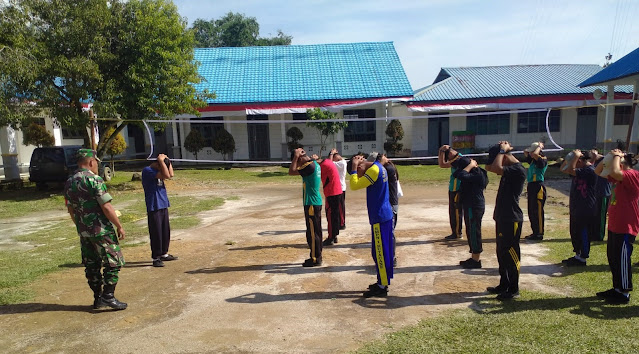 Untuk menjaga kesehatan dan kebugaran sebelum dimulainya kegaitan belajar mengajar, Babinsa Koramil 22/GM Kodim 0204/DS Serda F Burahima mengajak siswa-siswi SMA Negeri 1 Gunung Meriah melakukan senam pemanasan,