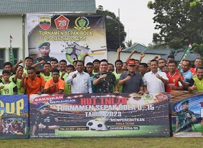 Dandim 0204/Deliserdang, Letkol Czi Yoga Febrianto, SH, MSi, menggelar turnamen sepak bola U-15 yang pembukaannya dilangsungkan di Lapangan Bola Makodim Deliserdang, Jln Galang Km 2, Lubuk Pakam, Jumat (22/9/2023) sore.