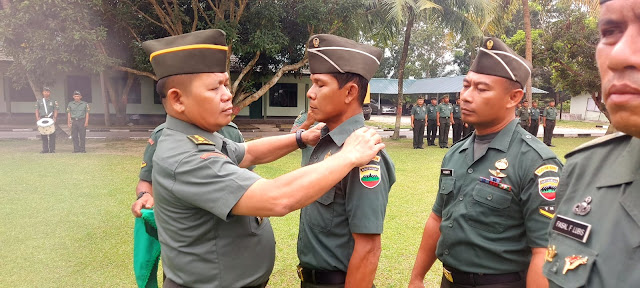 Dandim 0204 DS Letkol CZI Yoga Febrianto SH MSI melalui Kasdim Mayor CZI TM Panjaitan memimpin upacara pelantikan kenaikan pangkat Personel Bintara dan Tamtama di Lapangan Hijau Kodim 0204 DS di Lubukpakam Deliserdang. Selasa 10/10/2023.
