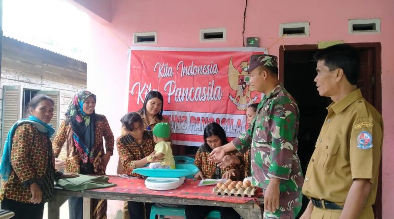 Sersan Satu (Sertu) Safruddin Babinsa-19/BP, Kodim DS melihat langsung pelaksanaan Posyandu Balita yang dilaksanakan Bidan Desa yang berlangsung di Dusun II, Desa Bangun Purba, Kecamatan Bangun Purba, Deli Serdang, Sumut,