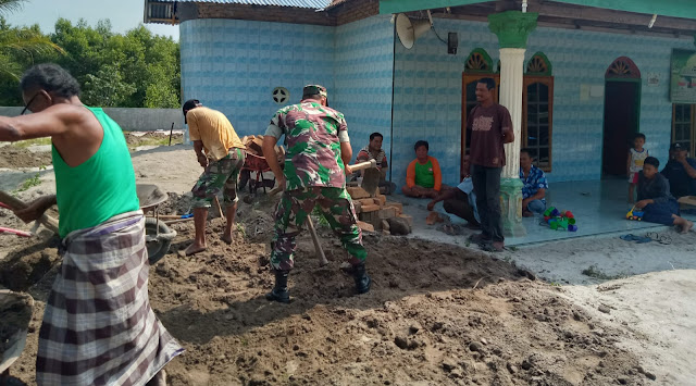 Babinsa Koramil 09/TM Kodim 0204/DS Serda Andi melaksanakan kegiatan Jumat bersih bersama warga dan pengurus Mushola Desa Sentang, Kecamatan Teluk Mengkudu, Kabupaten Serdang Bedagai,
