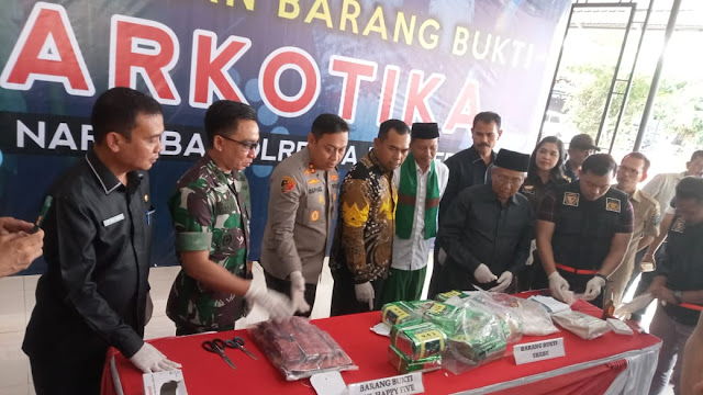 ” Kita prihatin dengan maraknya peredaran narkoba, bahkan dapat dibeli dengan harga yang murah mengakibatkan dampaknya yang sangat buruk bagi masyarakat. Kerjasama kita semua memberantas peredaran narkoba,” sebut Kapolresta.
