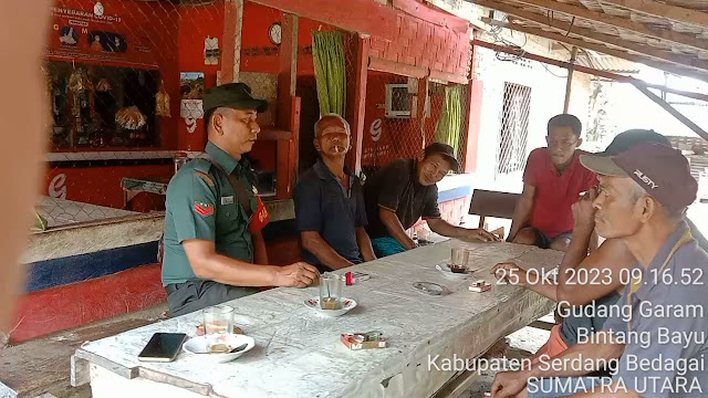 Babinsa Koramil 17/Ktr Kodim 0204/DS Koptu Edi Susanto melakukan silaturahmi ke warga Desa Gudang Garang, Kecamatan Bintang Bayu, kabupaten Serdang Bedagai,