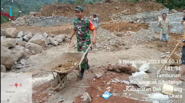 Dalam kegiatan itu warga bersama Babinsa Koramil Sibolangit membuat tanggul penahan tanah guna mengurangi resiko longsor yang dapat menyebabkan banjir akibat curah hujan yang tinggi.