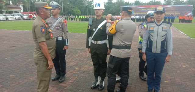 Dalam rangka pengamanan wilayah menyambut Hari Raya Natal dan Tahun Baru 2024, Petugas Gabungan Yang terdiri dari Polresta Deliserdang, Kodim 0203 DS, Pemkab Deliserdang dan unsur terkait menggelar Apel Pasukan dalam Operasi Lilin Toba di Lapangan Akun Alun Pemkab Deliserdang, Lubukpakam. Kamis 21/12/2023.