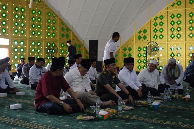 Dandim 0204 DS Letkol CZI Yoga Febrianto SH MSI mendampingi Bupati Deliserdang HM Ali Yusuf Siregar menghadiri kegiatan pengajian dan zikir Akbar dalam agenda refleksi penghujung tahun 2023 di Masjid Agung Sultan thaf Sinar Basarsyah, Lubukpakam Deliserdang. Kamis 28/12/2023.Kegiatan juga dihadiri sejumlah pejabat Pemkab Deliserdang, pengurus MUI Deliserdang, BAZNAS Deliserdang, Ormas Islam, ASN juga para peserta wirit Akbar sekitar 1000 orang.