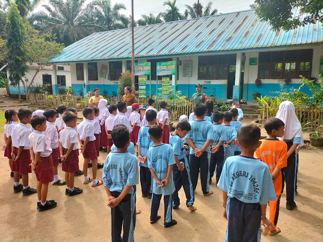 Babinsa TNI Koramil 19 Bangun Purba melakukan kegiatan sosialisasi terkait wawasan kebangsaan ( Wasbang) pada siswa Sekolah Dasar di Desa Bangun Purba, Kecamatan Bangun Purba, Kabupaten Deliserdang.Babinsa Serda Santoso  melaksanakan giat serbuan teritorial  “Senin Wasbang ” yaitu kegiatan  memberikan arahan tentang penghormatan dan salam Pancasila kepada para anak- anak SDN Desa Bangun Purba.