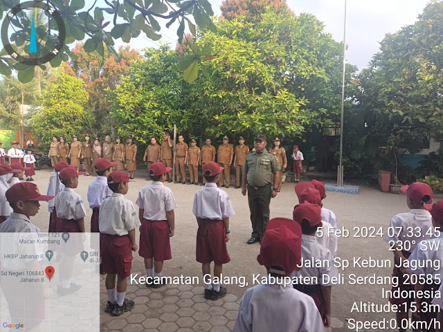 Koramil 18 Galang jajaran Kodim 0204 DS, melakukan sosialisasi wawasan kebangsaan pada pelajar di Sekolah Dasar Negeri 106843 Desa Jaharun B, Kecamatan Galang, Kabupaten Deliserdang. Babinsa Koramil Galang Pelda Tukidi melaksanakan kegiatan Senin Kebangsaan, melaksanakan Upacara Bendera dan bertindak sebagai Komandan Upacara untuk memberi contoh kepada murid-murid tentang disiplin melaksanakan upacara sekaligus untuk meningkatkan kesadaran hidup berbangsa dan bernegara kepada generasi muda.