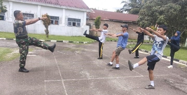 Babinsa Koramil 21/TJ Sertu Sunar senam bersama siswa SMA Bina Bangsa Tiga Juhar.