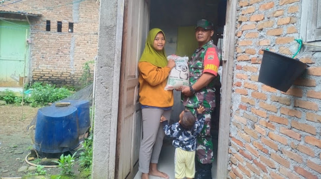 Dalam kesempatan itu, Babinsa TNI Pelda Supriadi memberikan bantuan sembako berupa beras pada salah seorang warga kurang mampu didesa binaannya.
