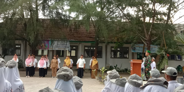Sertu Hasnan memimpin upacara bendera di SMKN 1 Teluk Mengkudu.