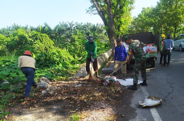 Babinsa TNI Kodim 0204 DS Koramil 01/SGL, Praka Rudi Kurniawan melaksanakan kegiatan Jum’at bersih bersama warga membersihkan sampah sampah plastik dan daun-daun di pinggiran jalan di Dusun 1b Desa Serba Jadi.