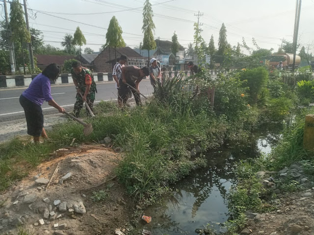 Gotong royong dilakukan Babinsa Koramil 06/ Lubukpakam bersama warga dengan membersihkan sampah dan saluran parit desa.